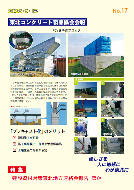 | タイトル | 東北コンクリート製品協会会報第17号 2022年9月15日発行 |